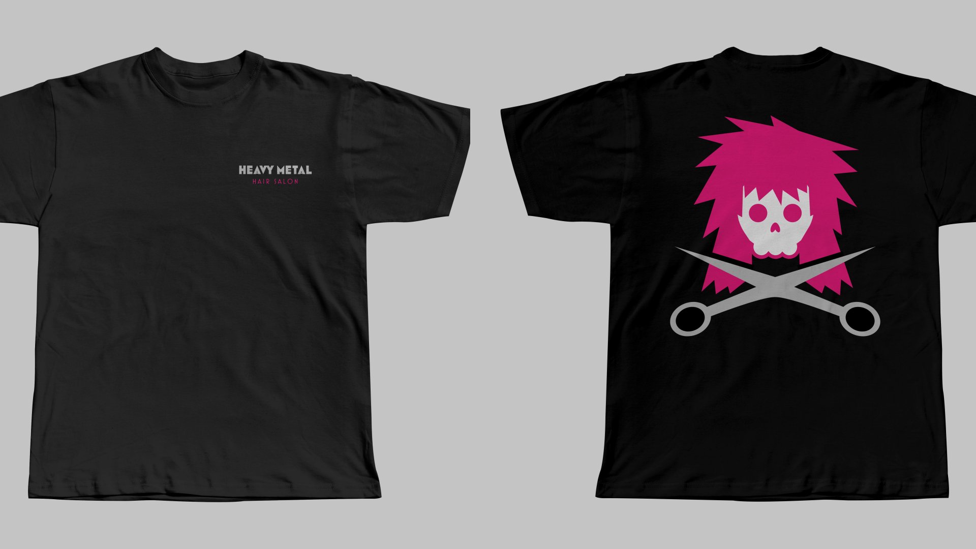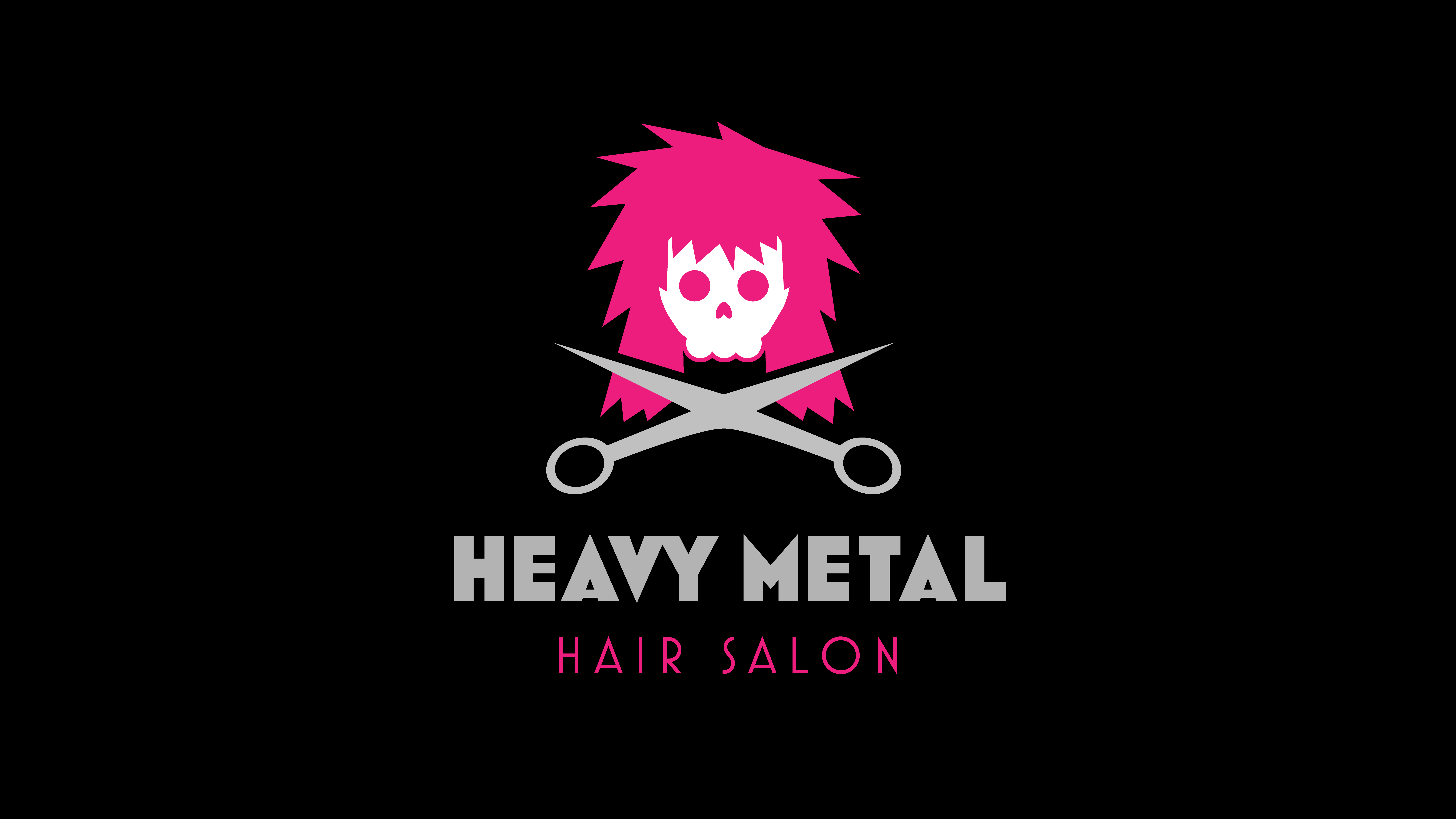 The logo features a fierce skull with a bold pink mohawk, symbolizing rebellion. Below, silver hairdressing scissors replace crossbones, blending cutting-edge techniques with a rock-inspired identity. This design embodies the salon’s fearless approach to beauty and self-expression.
