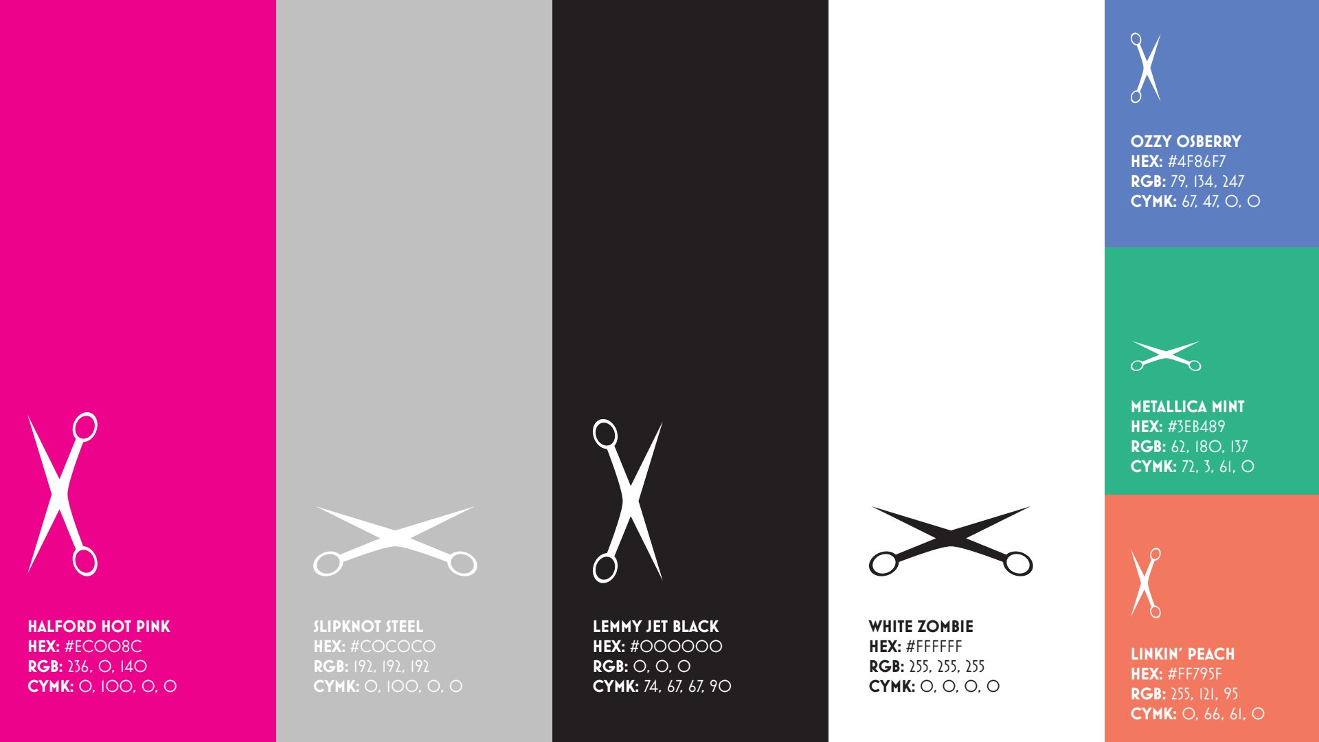 The primary tones are vibrant, metallic, and dark, embodying heavy metal’s raw energy, while the secondary hues add a fresh, playful edge. Together, they create a dynamic, unapologetic vibe that electrifies the brand and resonates with its fearless, style-driven audience.