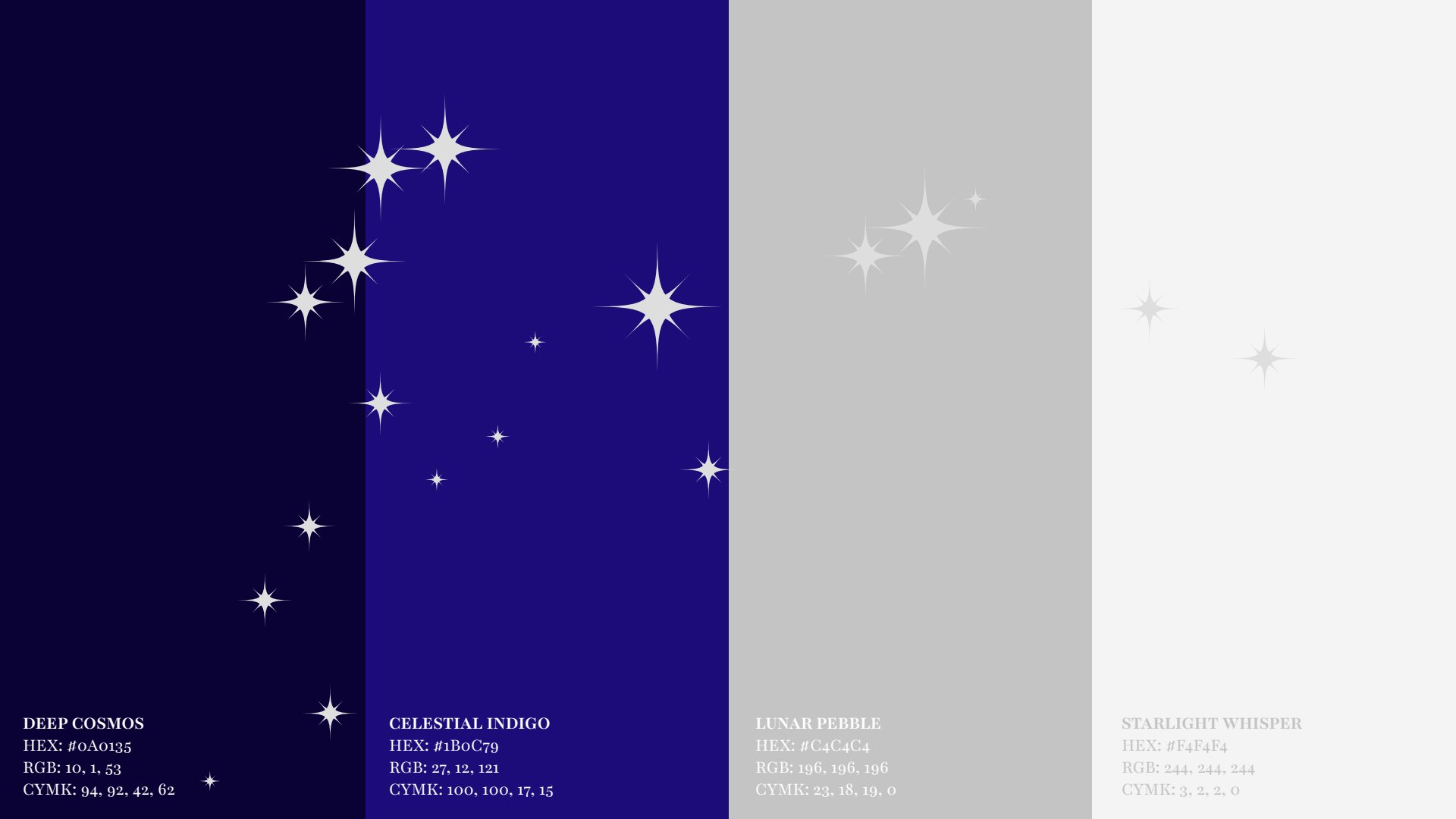 With the darker shades, they evoke mystery and depth, while the lighter accents bring a sense of elegance and balance. Together, these colors create a timeless and enchanting visual identity that reflects the brand's refined and poetic essence.