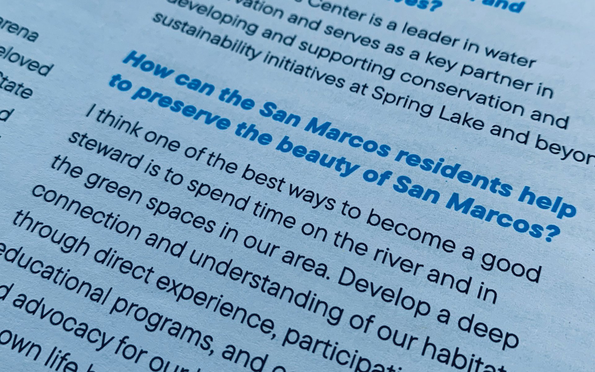 Designed to engage readers, the publication aims to raise awareness about environmental impact and the importance of preserving the San Marcos River.
